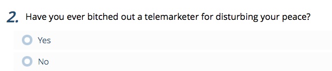 I’m preeeetty sympathetic to telemarketers because back in ye olde days when I was still in university, I worked in this weird little basement call centre where we would try to convince alumni to donate us more money. So in general I try to be pretty kind and patient when dealing with people trying to sell me shit over the phone. But for reals some of them can be really hard to get rid of, even once you’ve politely declined their offer. So I don’t think that getting a bit forceful while trying to get a telemarketer off the phone is being bitchy.