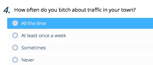 OH YOU COMPLAINED ABOUT TRAFFIC? GAWD, YOU BITCH.