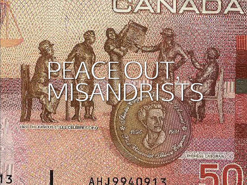 With that in mind, Harper began his de-ladyfying of the Canadian currency back in 2012 by removing the Famous Five and an image of the Thérèse Casgrain Volunteer Award from the fifty dollar bill. The Famous Five, for you lucky few not in the know – how nice it must be to live in ignorance of Canada’s deplorably lady-infested past! – were Emily Murphy, Irene Parlby, Nellie McClung, Louise McKinney and Henrietta Edwards, the five women foolish enough to ask if the word “persons” in Section 24 of the British North America Act included female persons. Which of course was a trick question because we all know that there’s no such thing as a female person – just male persons and hysterical, irrational women.